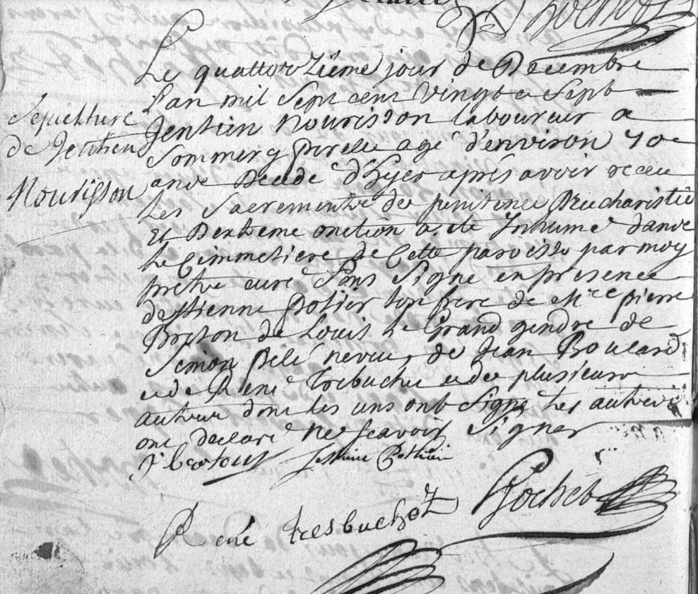 NOURISSON Gentien ( °2 décembre 1663 Saint-Sigismond,45310,Loiret,Centre-Val de Loire,FRANCE - 13 décembre 1727 Saint-Péravy-la-Colombe,45310,Loiret,Centre-Val de Loire,FRANCE )